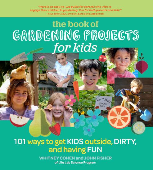 Their outreach director, John Fisher, who I met at the National Farm to School Conference this summer, has recently co-authored a book with Whitney Cohen, the education director at Life Lab. It’s titled, The Book of Gardening Projects for Kids: 101 ways to get kids outside, dirty, and having fun. The book is aimed at parents and, as billed, is filled with ways to get kids outside in the garden and having fun. While it covers the basics like how to plan and build and maintain a garden, including various kid-themed gardens, it is more about gardens as spaces where kids will want to play, hang out, and just by being there, learning about the natural world. Many of the gardens pictured in the book have me thinking about redoing some of my own outdoor spaces, and my kids are grown up!