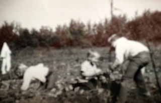 My grandparents were potato farmers, growing about 100 acres of Kennebecs on their farm in the Connecticut River Valley. When I was little we’d travel to help with the harvest except for the one year we were already there. That year my father left teaching to work on the farm year round and I remember our house sat right next to rows and rows of potatoes and we’d dig fingerling potatoes every night beginning in early July. My parents only had a cheap Brownie camera, however, so the only photos I have of this time are blurry black and whites.