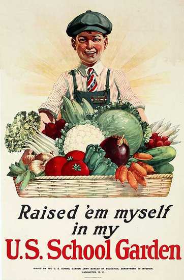 People believe that the World War II “Food for Freedom” gardening campaign was so successful (40% of all fruits and vegetables consumed during this time was produced in the 21 million Victory Gardens leading to the highest percentage of fruits and vegetables in our diet in recent times) because so many of the adults participating in the program had belonged to the U.S. School Garden Army during World War I.